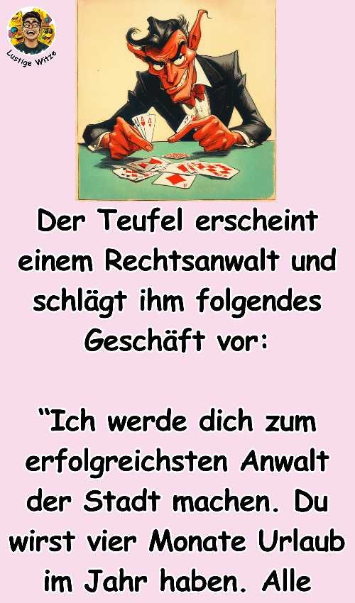 Der Teufel erscheint einem Rechtsanwalt und schlägt ihm folgendes Geschäft vor: