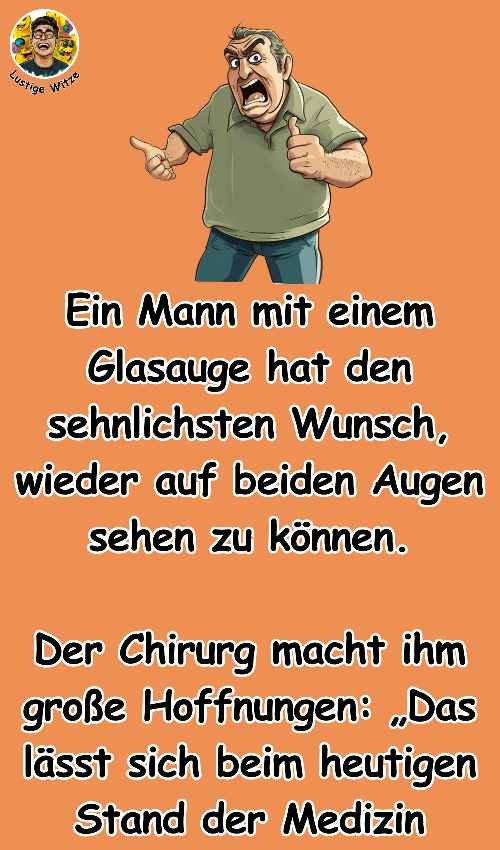 Ein Mann mit einem Glasauge hat den sehnlichsten Wunsch, wieder auf beiden Augen sehen zu können.