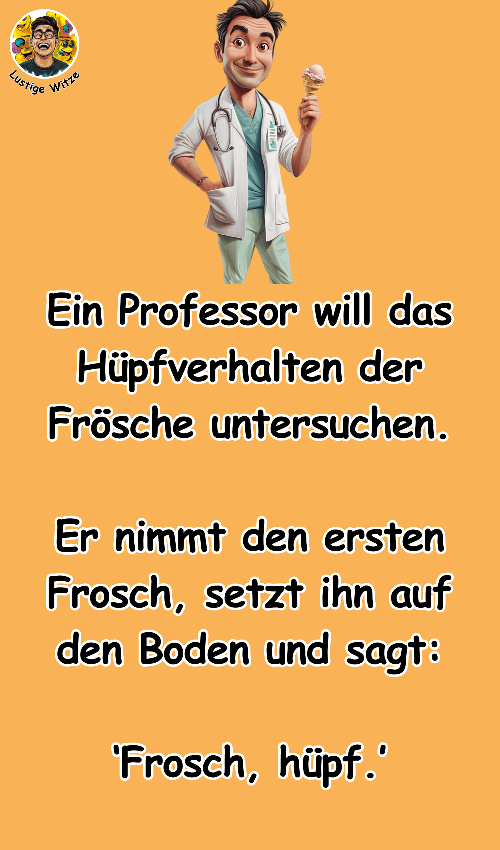 Ein Professor will das Hüpfverhalten der Frösche untersuchen.