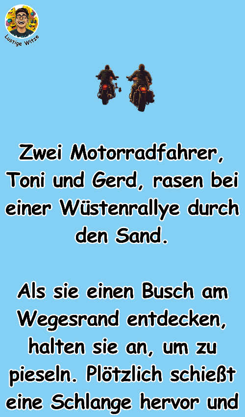 Gerd zu Toni:„Der Arzt fragt nach der Farbe der Schlange!“