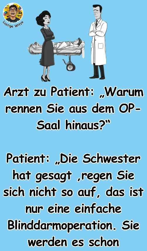 Arzt zu Patient: „Warum rennen Sie aus dem OP-Saal hinaus?“