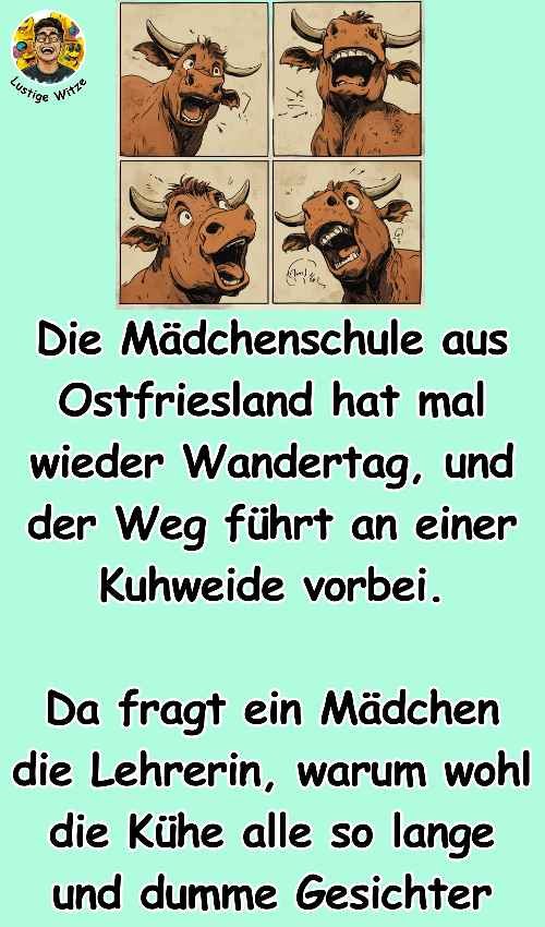 Da fragt ein Mädchen die Lehrerin, warum wohl die Kühe alle so lange und dumme Gesichter haben.