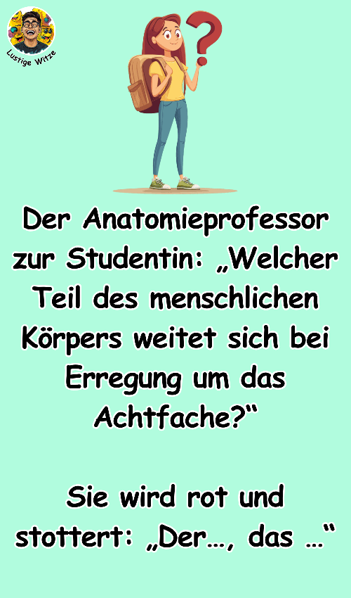 Der Anatomieprofessor zur Studentin: „Welcher Teil des menschlichen Körpers weitet sich bei Erregung um das Achtfache?“
