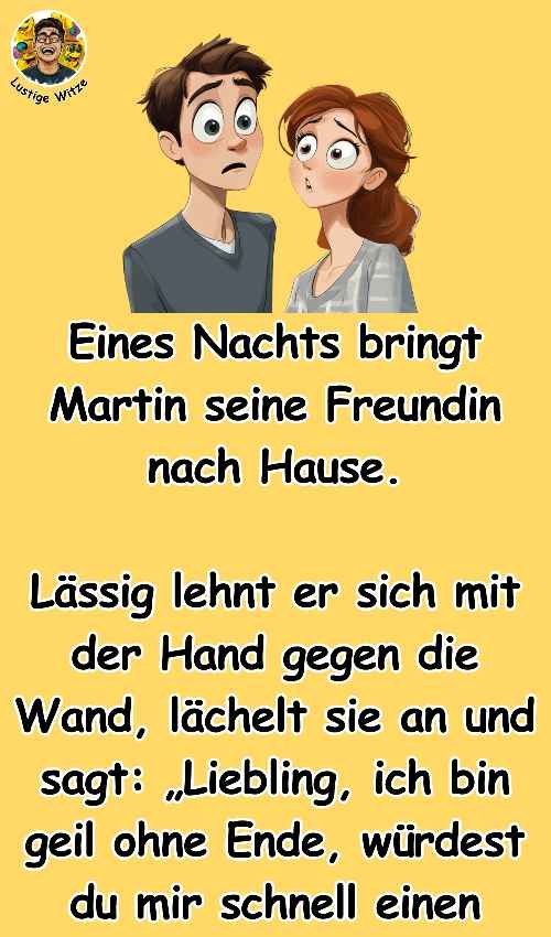 Eines Nachts bringt Martin seine Freundin nach Hause.