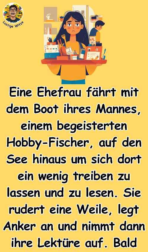 Eine Ehefrau fährt mit dem Boot ihres Mannes, einem begeisterten Hobby-Fischer, auf den See hinaus um sich dort ein wenig treiben zu lassen und zu lesen. Sie rudert eine Weile, legt Anker an und nimmt dann ihre Lektüre auf. Bald darauf erscheint der Parkwächter in seinem Motorboot.