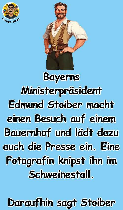 Bayerns Ministerpräsident Edmund Stoiber macht einen Besuch auf einem Bauernhof und lädt dazu auch die Presse ein. Eine Fotografin knipst ihn im Schweinestall.