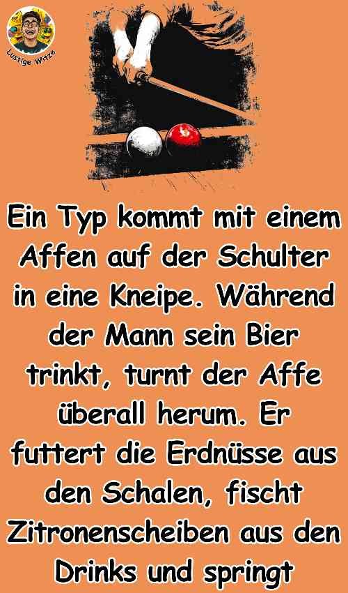 Tierwitze – Ein Typ kommt mit einem Affen auf der Schulter in eine Kneipe