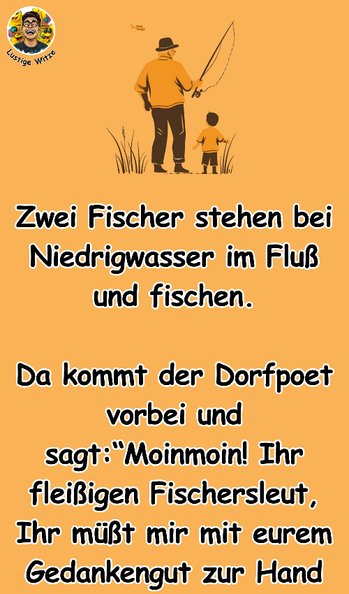 Berufwitze – Zwei Fischer stehen bei Niedrigwasser im Fluß und fischen
